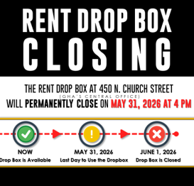 The rent drop box at 450 N. Church St. will permanently close on May 31, 2026. Click for more information.